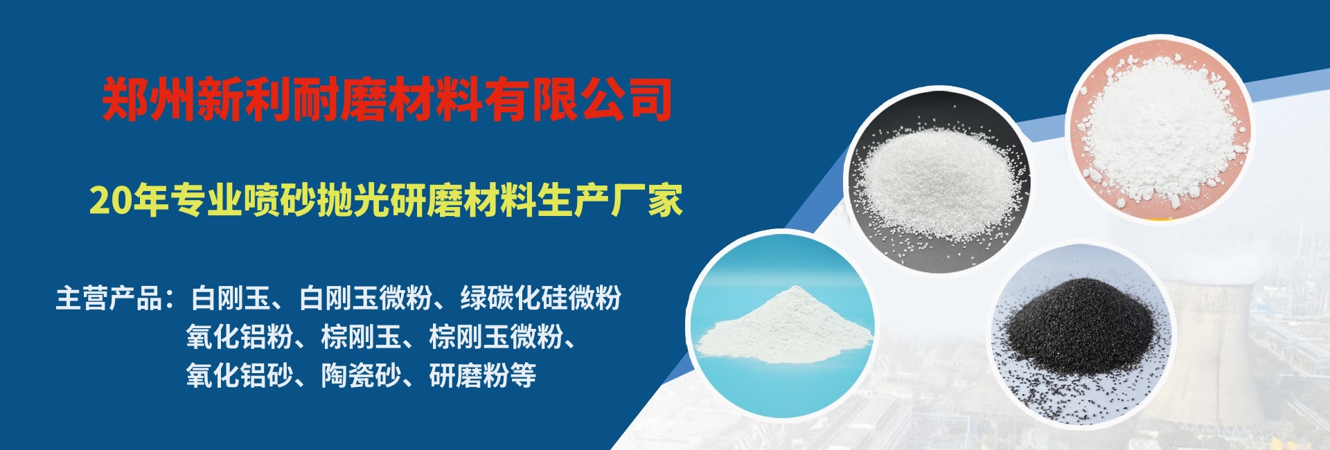 鄭州新利耐磨材料有限公司主要產(chǎn)品:包含白剛玉砂、白剛玉微粉、棕剛玉、棕剛玉微粉、 綠碳化硅微粉、氧化鋁砂、氧化鋁粉、研磨粉等多系列產(chǎn)品,為客戶提供豐富的產(chǎn)品型號及加工定制服務...